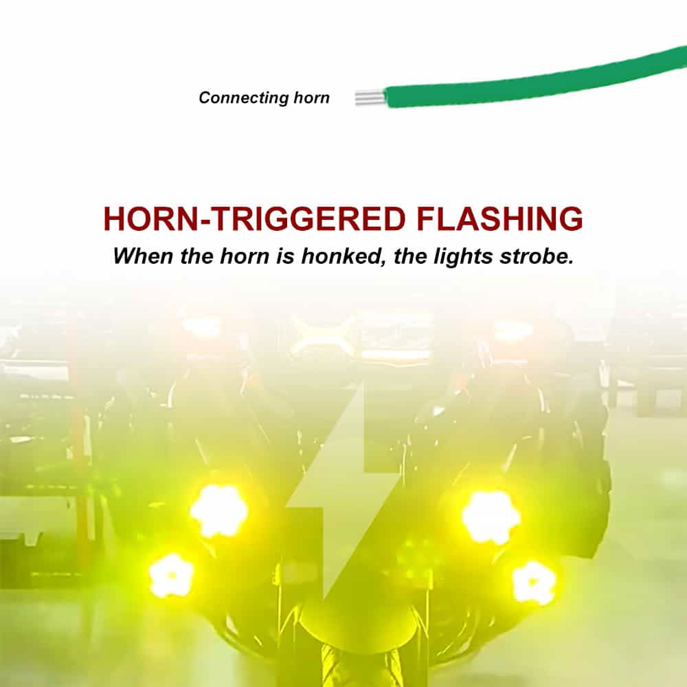 Améliorez l'éclairage et la sécurité de votre moto avec le faisceau clignotant déclenché par le klaxon. Il ne s'agit pas seulement de style ; c'est une innovation qui rend votre conduite plus sûre et plus dynamique. Démarquez-vous sur la route, restez en sécurité et roulez en toute confiance. Personnalisez la séquence de clignotement de votre moto selon vos préférences et augmentez votre visibilité.