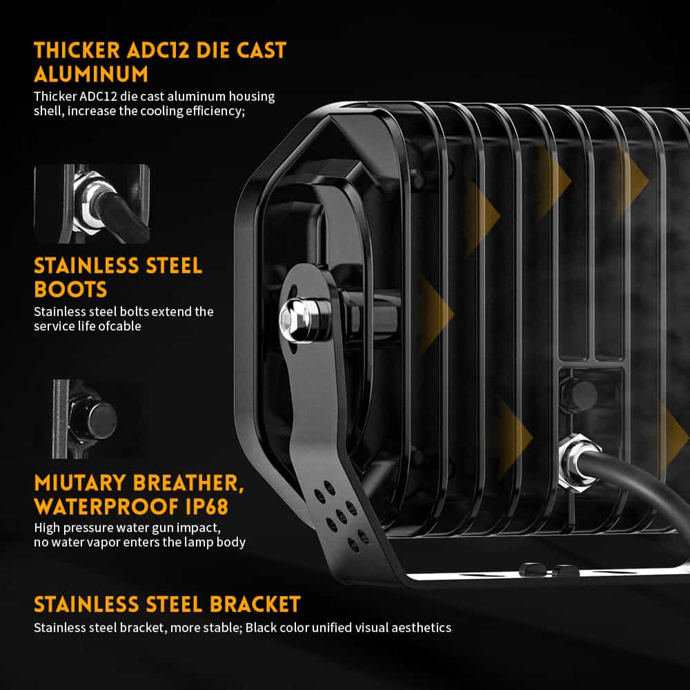 - Equipped with advanced projector optics, this driving light maximizes light output while reducing scatter, providing a sharp and well-controlled beam pattern.